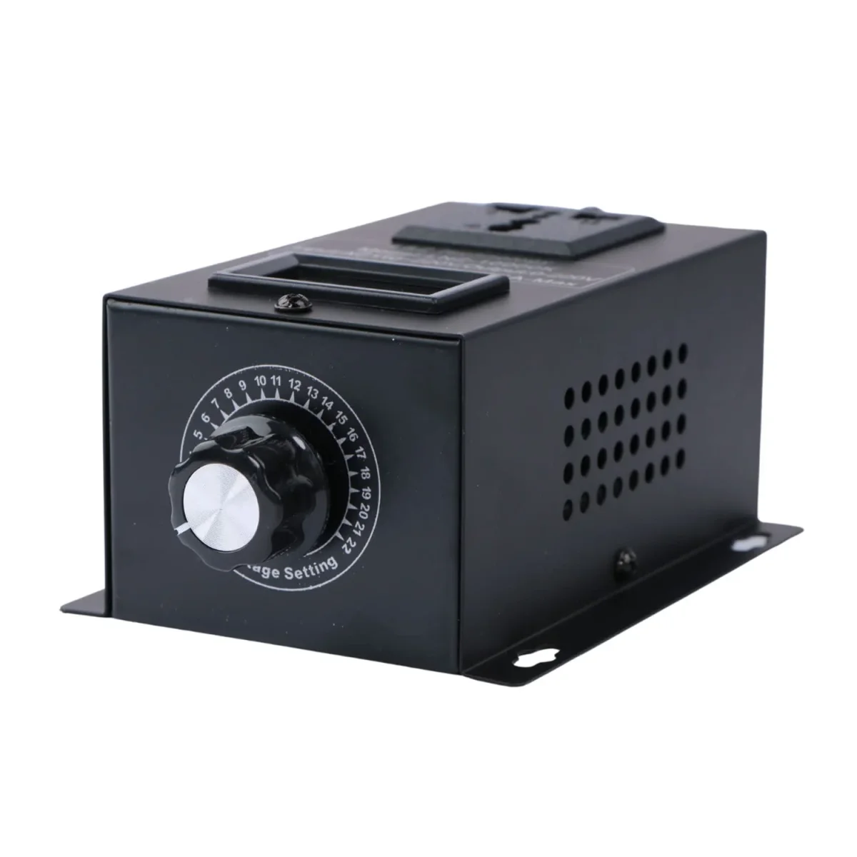 • La carcasa de metal es resistente y duradera, la perilla de control puede ajustar el voltaje de salida rápida y continuamente, y el agujero trasero es fácil de instalar y fijar;