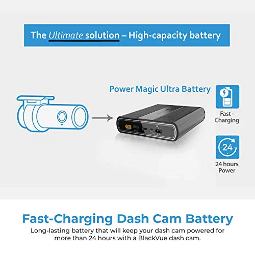 - Modo de estacionamiento extendido: con el B124X, obtienes una vigilancia extendida del modo de estacionamiento sin necesidad de extraer energía de la batería de tu vehículo. El B124X es la mejor solución para obtener hasta 20 horas de tiempo de funcionamiento del modo de estacionamiento, duplicando el tiempo de funcionamiento de las generaciones anteriores de baterías BlackVue.