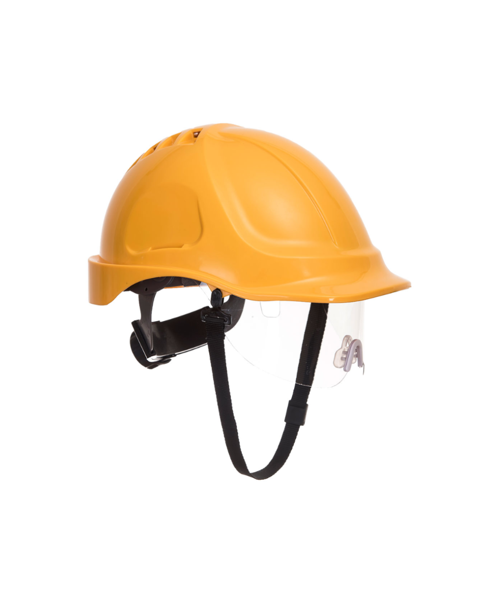 Casco de protección con visor ventilado con cubierta de ABS. Cuenta con un cómodo arnés textil de 6 puntos, con ajuste por ruleta y es ajustable a tallas 56-63cm. También lleva una banda para el sudor y el barboquejo incluidos. Incluye el visor retráctil PW56. Disponibles en varios colores.