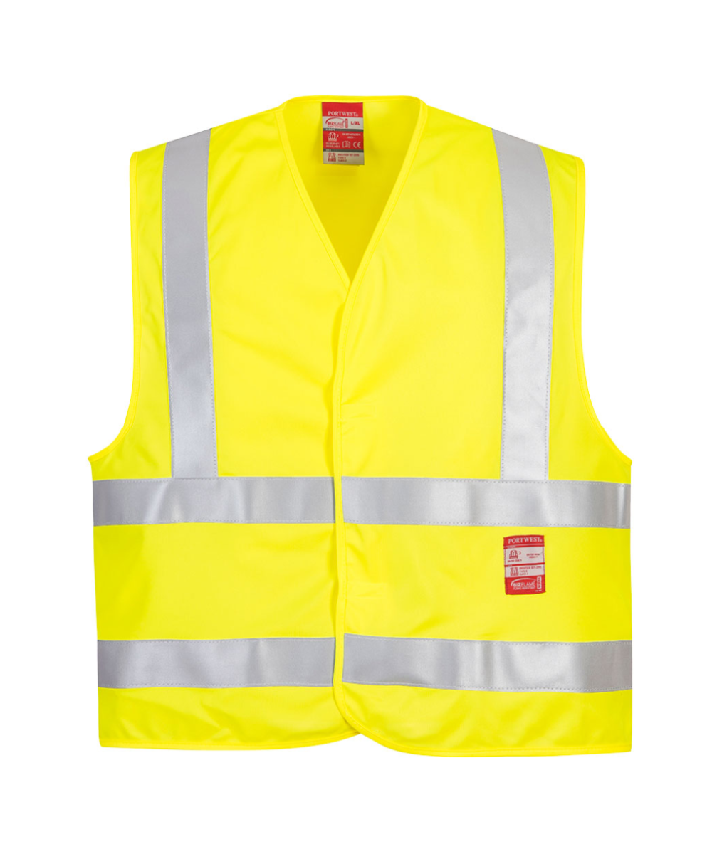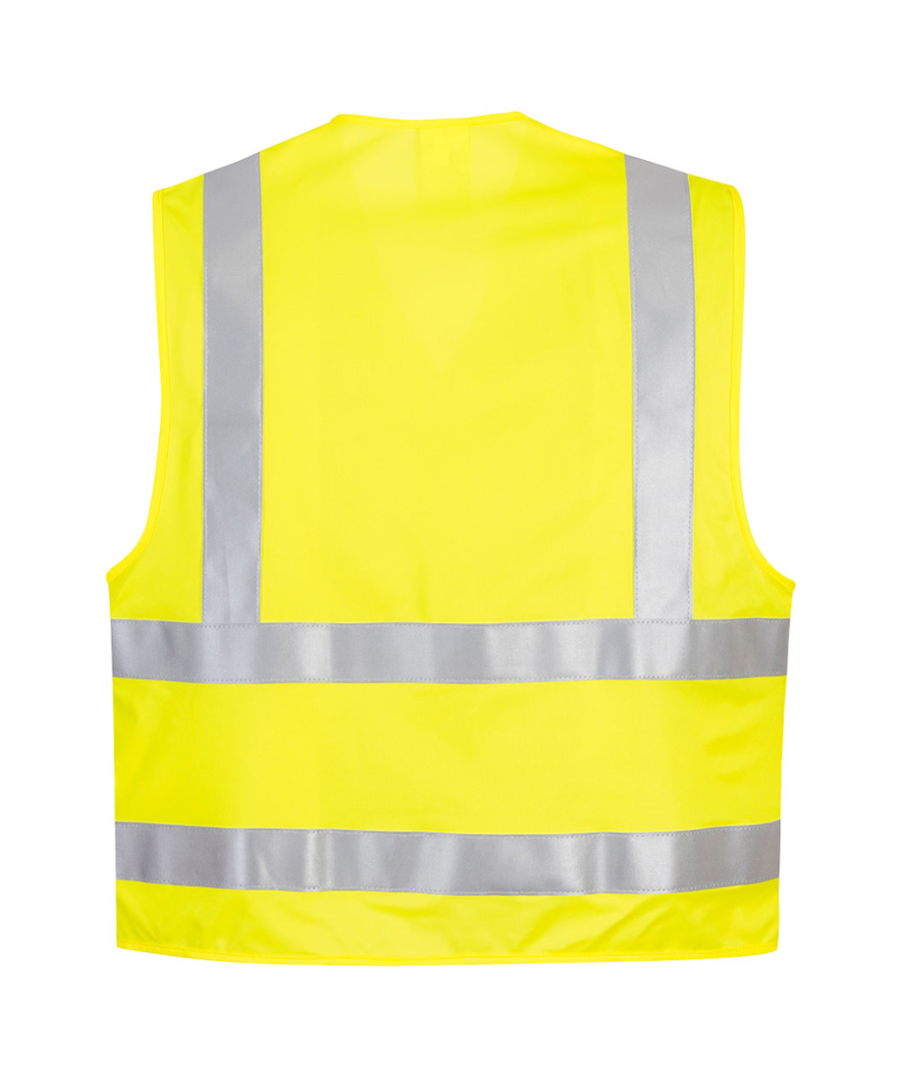 Chaleco FR75 de alta visibilidad resistente a la llama con certificado según EN ISO 20471 Clase 2 y EN ISO 14116 Indice 1.