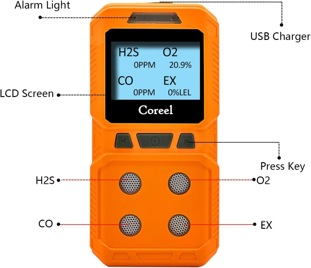 - Alta sensibilidad y medición precisa: el detector portátil de 4 gas con sensor de gas importado de alta calidad, excelente sensibilidad y excelente repetibilidad, viene calibrado de fábrica. Abre y usa directamente.