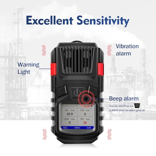 - Excelente sensibilidad: el detector de gas múltiple de 4 monitores de gas tiene un tiempo de respuesta < 30 segundos, cuando la calidad del aire no es segura, advertiría al usuario a través de alarmas audibles, visuales y de vibración, también puedes optar por apagar el sonido cuando la alarma se apaga. El monitor portátil multigas es vital para protegerlo de los peligros de los gases tóxicos y combustibles en espacios confinados y entornos de trabajo peligrosos