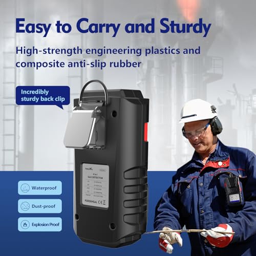 - 【Fácil de transportar y resistente】Clip trasero increíblemente resistente para llevar, la carcasa de 4 detectores de gas múltiples monitores de gas está hecha de plásticos de ingeniería de alta resistencia y goma antideslizante compuesta, con alta resistencia y buena sensación, y el medidor de gas también es impermeable, a prueba de polvo y a prueba de explosiones. Te da total tranquilidad dondequiera que estés trabajando