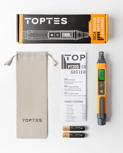 • Detector de fugas de gas combustible: El TopTes PT205 es un detector de fugas de gas mejorado diseñado para garantizar la seguridad de su hogar y sus seres queridos. El rastreador de gas PT205 es compatible con una amplia gama de gases combustibles, incluyendo GLP, metano, etano, propano, butano, gas natural, gas de carbón, combustible de gas y gas natural licuado
