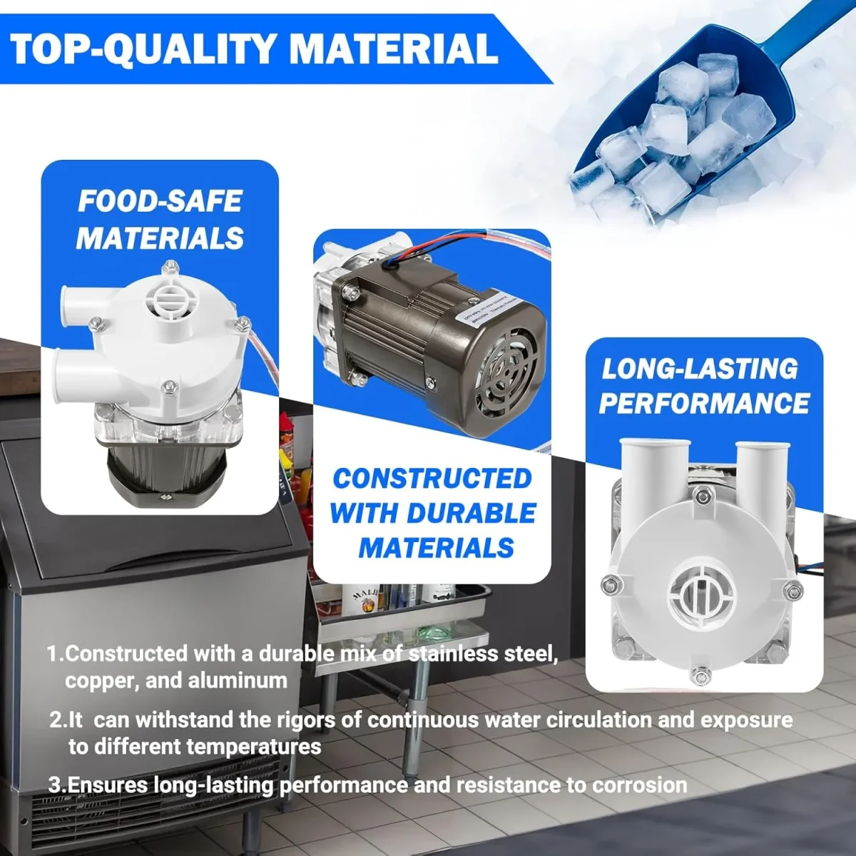 - ✅【Rendimiento confiable】: esta bomba de primera línea está diseñada específicamente para su uso con máquinas de hielo de la serie Hoshizaki KM, asegurando un rendimiento y fiabilidad óptimos. La bomba de agua es una parte vital de tu máquina de hielo y garantiza que pueda producir y cosechar hielo de manera efectiva. Asegúrate de reemplazar uno roto rápidamente.