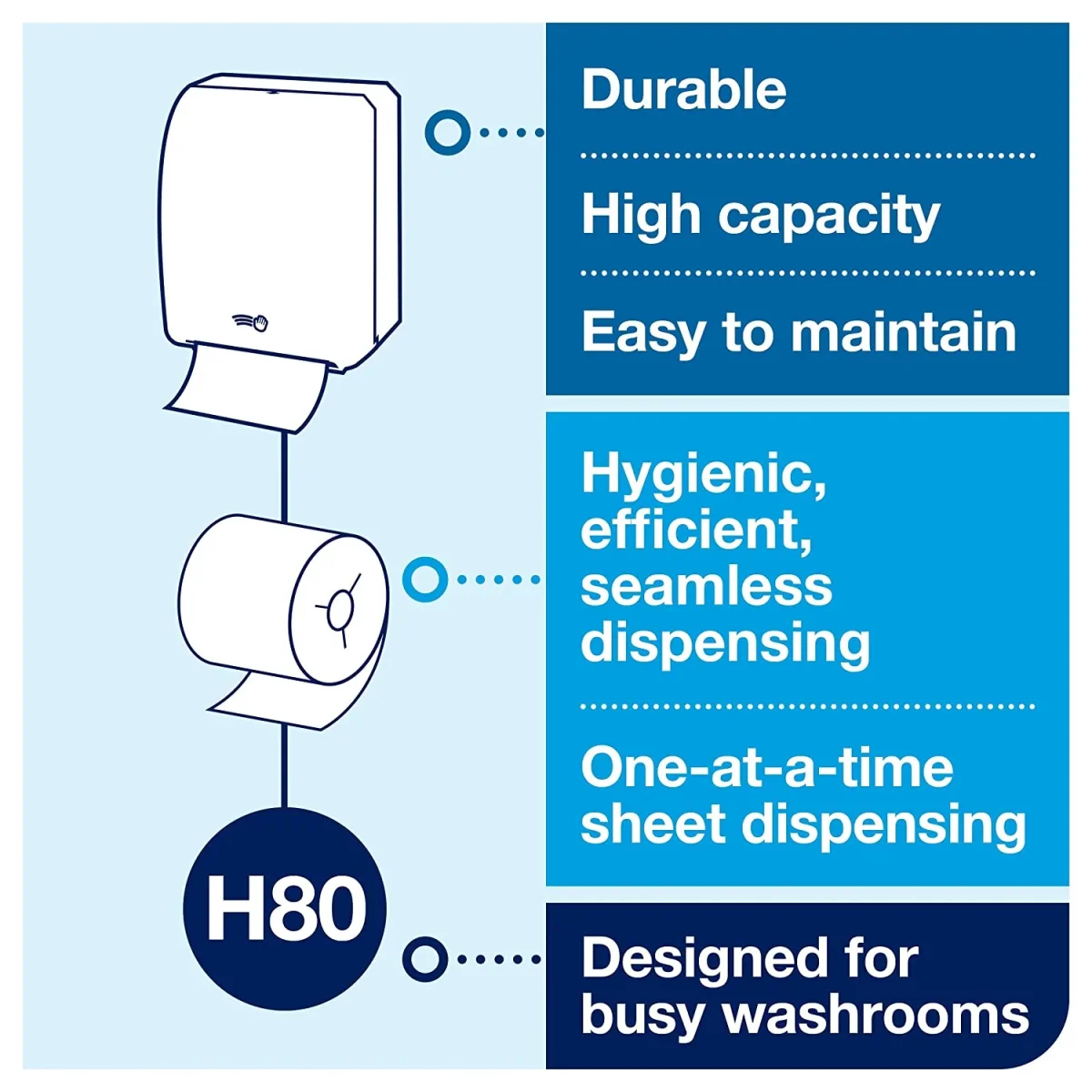 - Aumenta la higiene del cliente con una práctica dispensación única que te permite tocar solo la toalla expuesta.